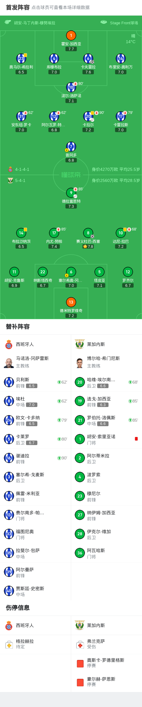 西班牙人与莱加内斯战平1-1,赛义杜巴-西塞破门